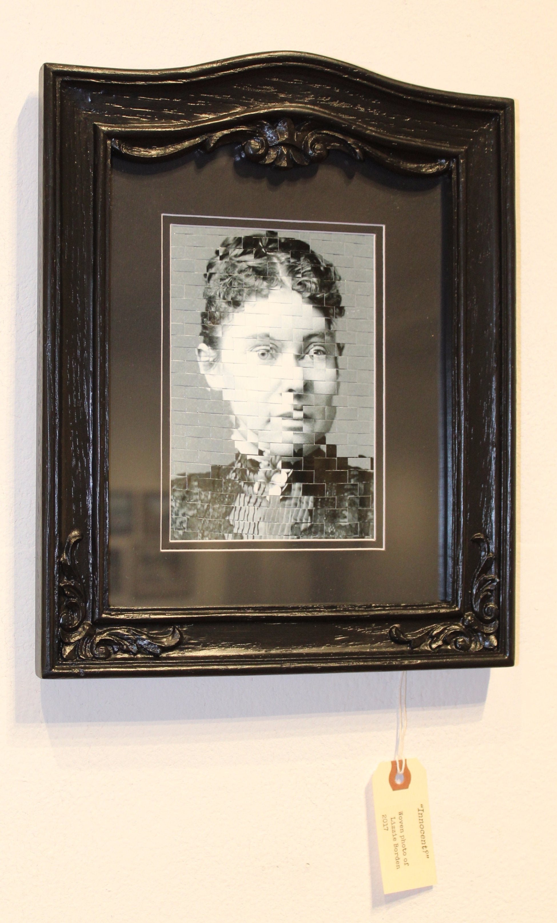 Woven photo of Lizzie Borden, framed and matted in vintage frame.
