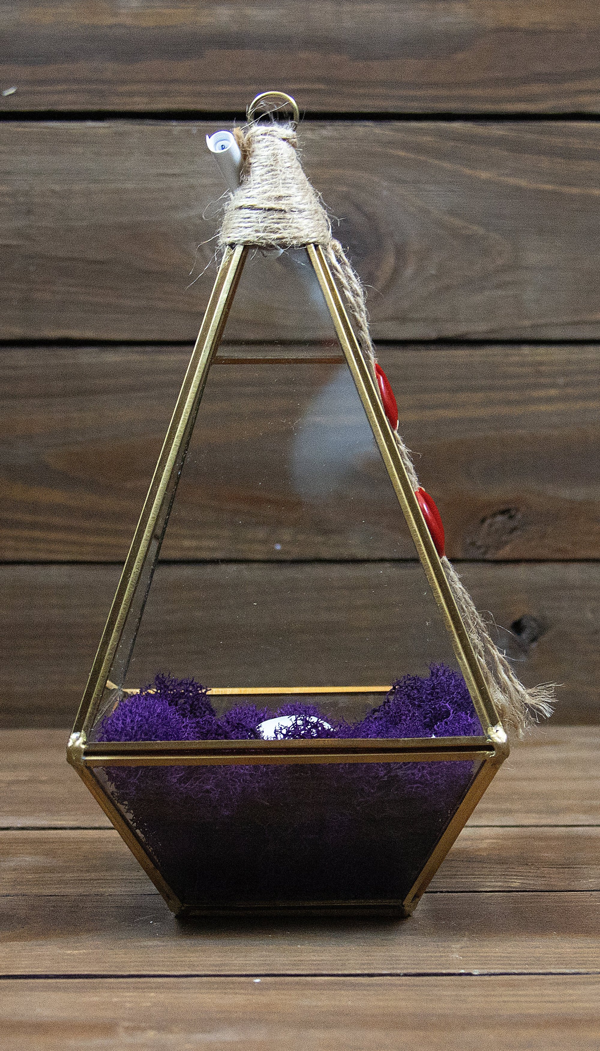 Housed in a glass reliquary filled with violet moss, sealed with jute and red wax seals.