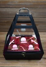 Paperclay pearl around a heart of sea salt, rosemary oil, dried lavender, frankincense resin, myrrh resin, dried rose petals, Bleeding Heart flower essence, and holy earth from the Sanctuario de Chimayo.
