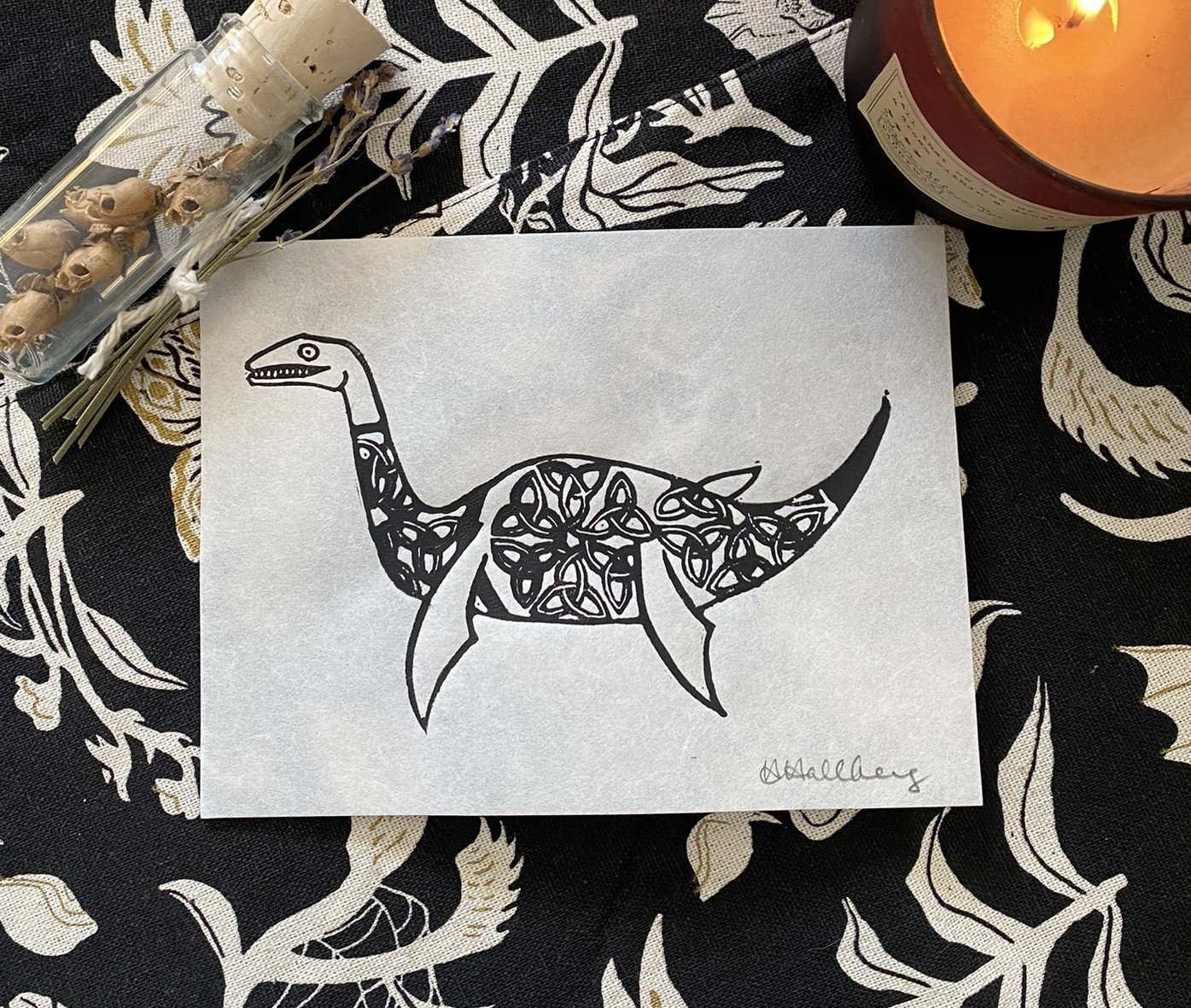 Hand drawn, hand carved, hand printed by me.
